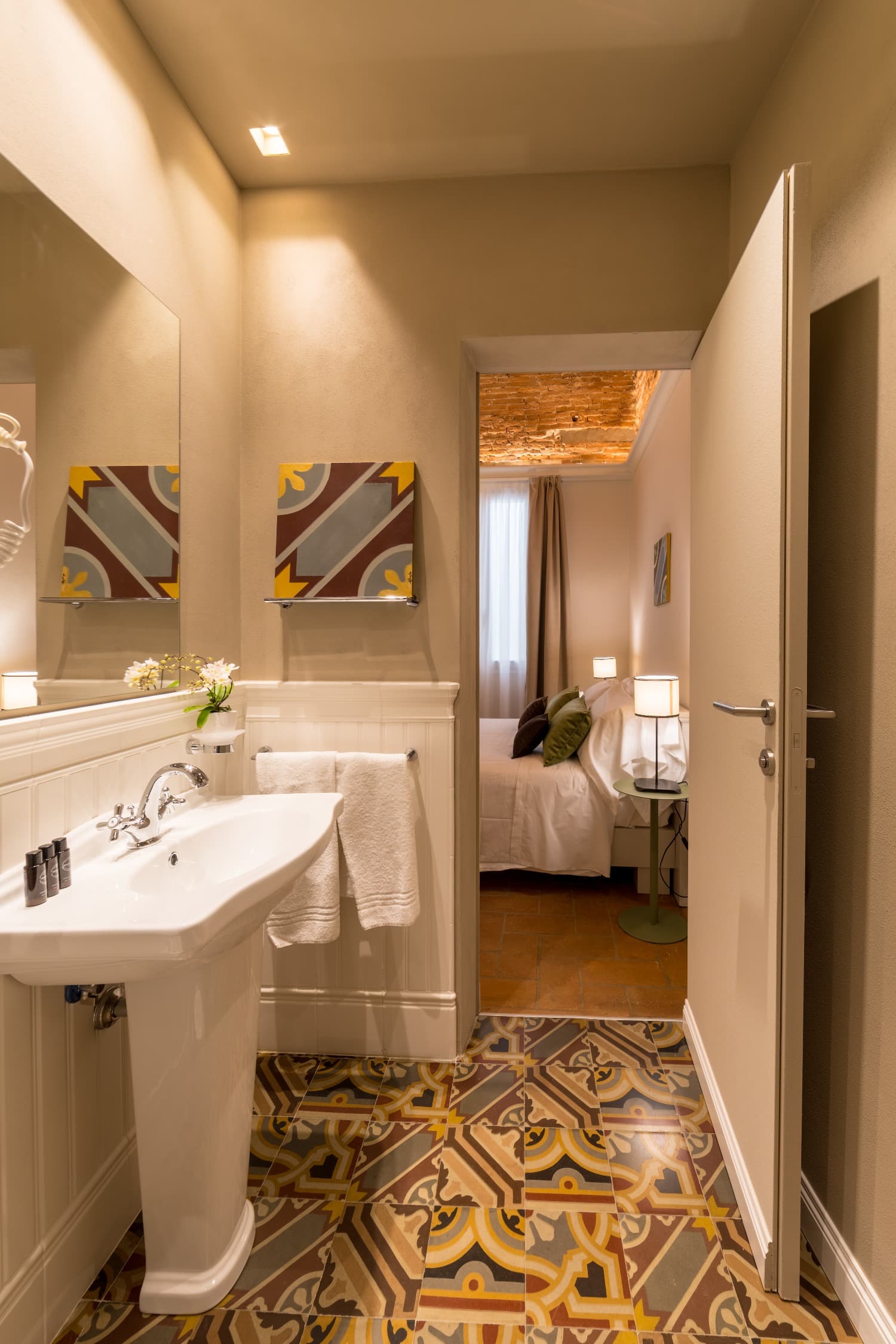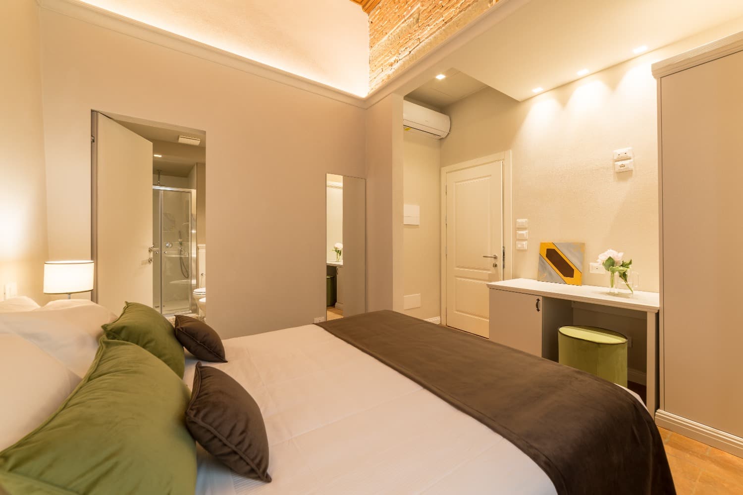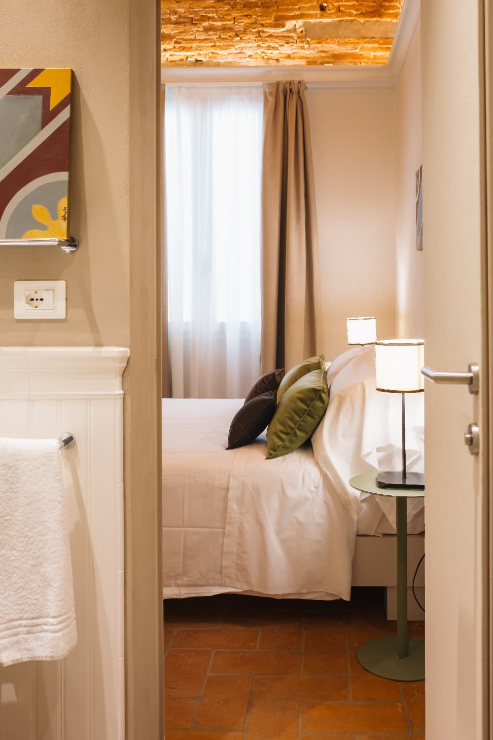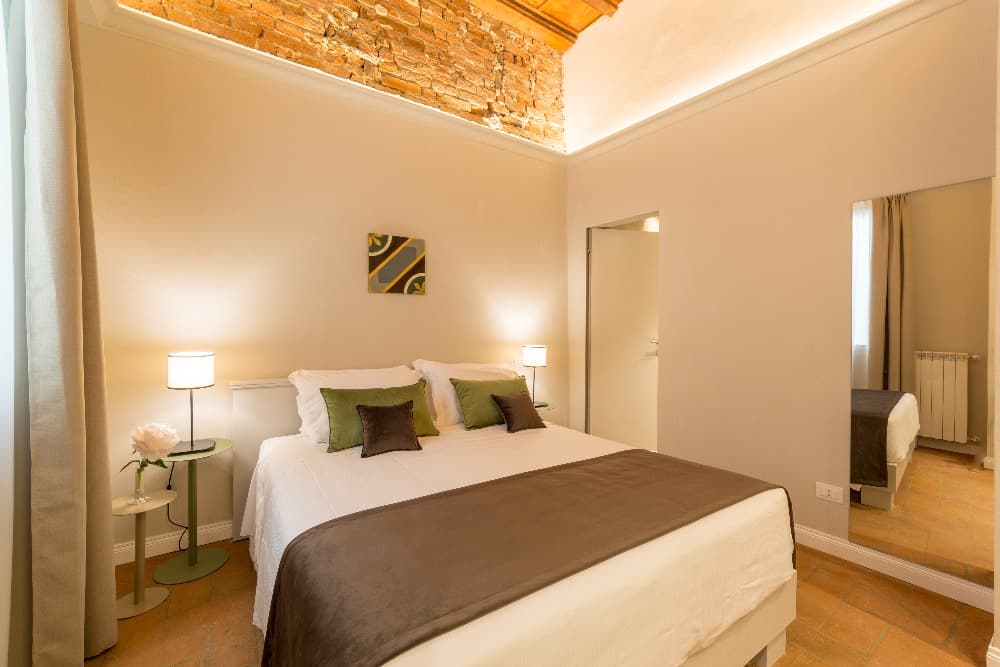 La camera Santa Croce è spaziosa, con uno speciale muro a vista che rende la stanza unica.